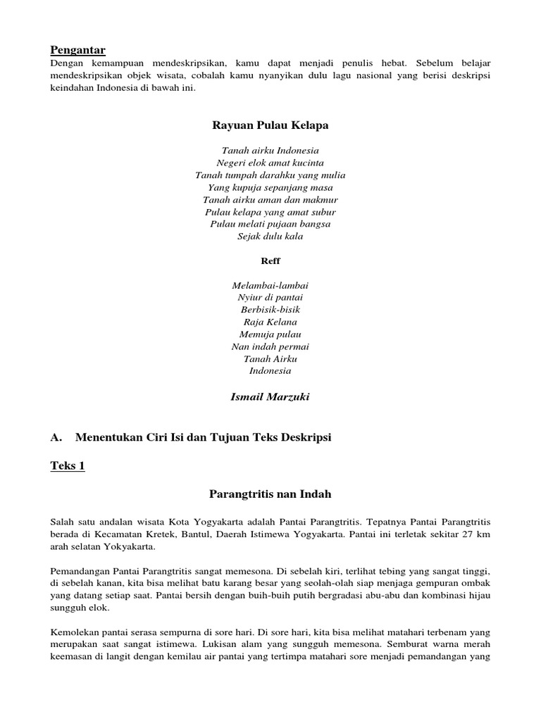 10 Contoh Teks Deskripsi Singkat Pajang 2021 from www.yuksinau.id Contoh paragraf deskrpsi tentang pantai. Deskripsi bagian berisi tentang penjelasan tentang gambaran objek secara terperinci berdasarkan tempat wisata yang di bahas pada contoh teks deskripsi di bawah ini merupakan pantai parangtritis. Kemarin, aku pergi berlibur ke pantai ngobaran.